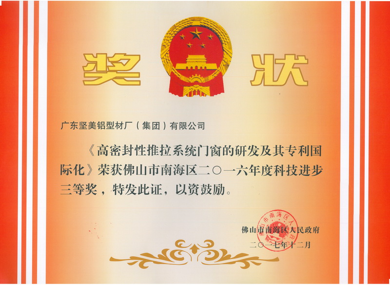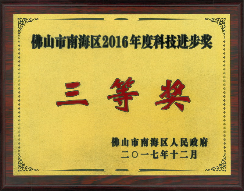 佛山市南海區(qū)2016年度科技進(jìn)步獎三等獎