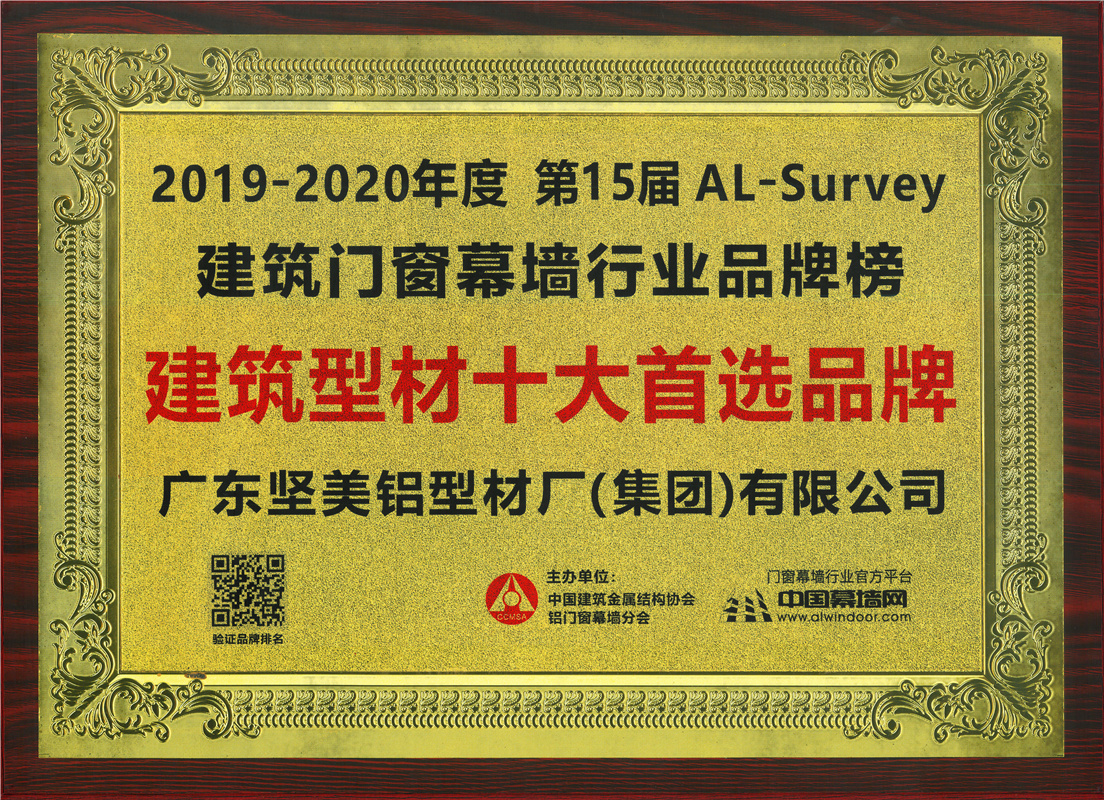 2019-2020年度第15屆AL-Survey建筑門窗幕墻行業(yè)品牌榜建筑型材十大首選品牌
